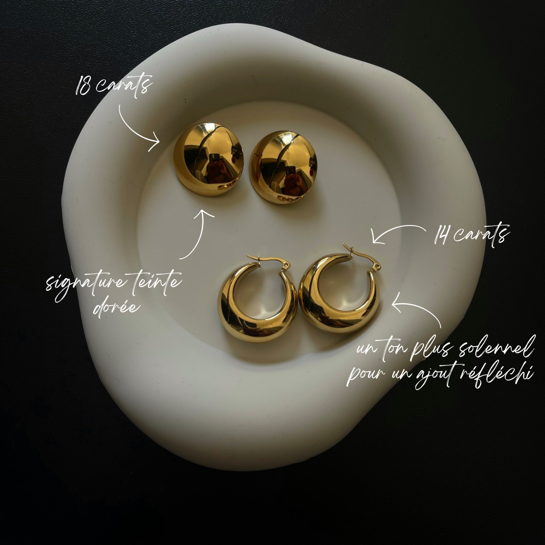 Pas du tout. Nous nous engageons à offrir une parure de haute qualité, à la fois durable et accessible. Chaque pièce, que ce soit en 14k ou 18k, est fabriquée de manière experte par des artisans qualifiés en utilisant des matériaux de qualité supérieure. La seule différence réside dans le ton, conçu pour s'adapter à votre style personnel.